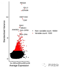 (图1:展示了18354个基因和1500个高度可变基因)