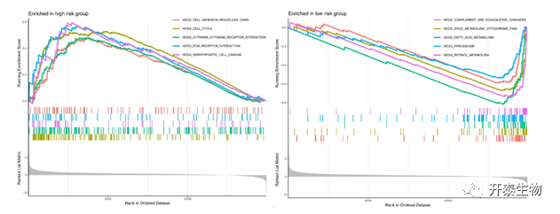 (图5:高得分组GSEA富集分析;低得分组GSEA富集分析)