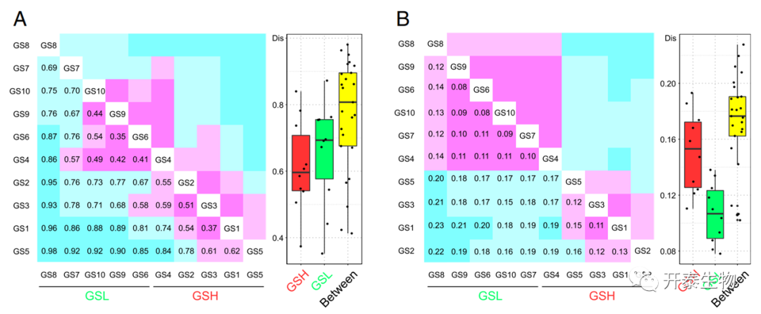 在微生物群落组成和功能方面,GSH和GSL之间的差异显著,表明GSH和GSL之间群落组成和功能都有差异(图3)。群落功能的差异系数值低于群落组成的差异系数,表明GS的微生物功能比其群落组成更相似。总的来说,疮痂严重程度与微生物功能的关系更为密切,且L的功能相似性高于H。