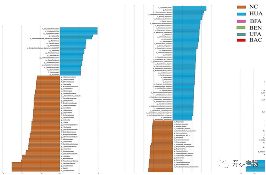 图3. BFA处理6周后高尿酸血症小鼠丰度差异显著的肠道微生物 (LDA评分> 2)