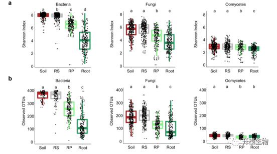 扩展数据图2. 植物根系中微生物α多样性和富集特征
