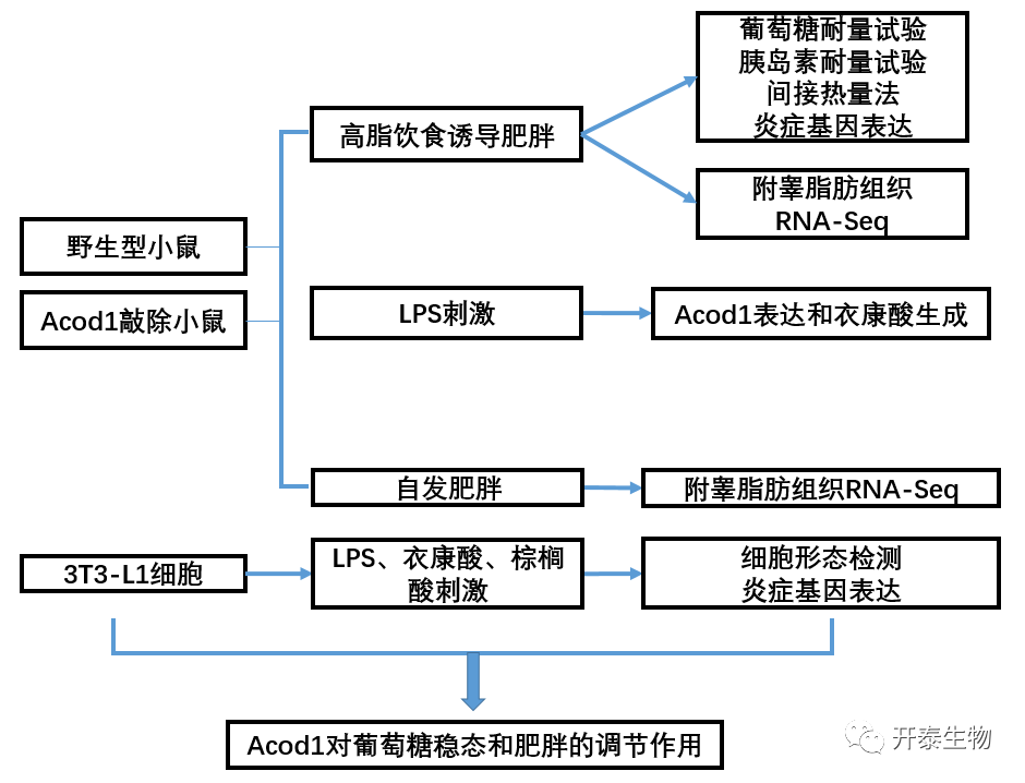 肥胖是一项日益严重的公共卫生挑战,其与胰岛素抵抗和II型糖尿病密切相关。肥胖具备慢性、低度的全身性炎症特征。脂肪组织是全身炎症的主要代谢组织,脂肪组织炎症与肥胖期间的代谢调节和免疫应答有关。研究表明,线粒体代谢及代谢产物在调节炎症信号和巨噬细胞表型中至关重要。衣康酸是由顺乌头酸酶1(Acod1)产生的代谢物,在促炎巨噬细胞活化过程中显著上调,同时衣康酸信号通路的增强可以有效减轻各种疾病动物模型的炎症反应。但是,还未见关于Acod1/衣康酸调节葡萄糖代谢、肥胖或糖尿病的研究。本研究对Acod1敲除小鼠进行饮食诱导肥胖(DIO),结合RNA-Seq技术,研究Acod1在肥胖和糖尿病发展中的作用。