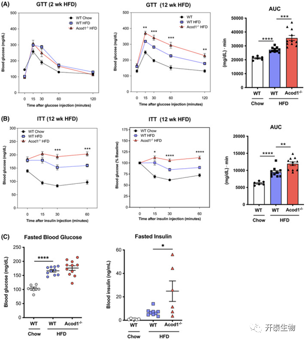 图3 Acod1敲除在肥胖期间对糖代谢的影响