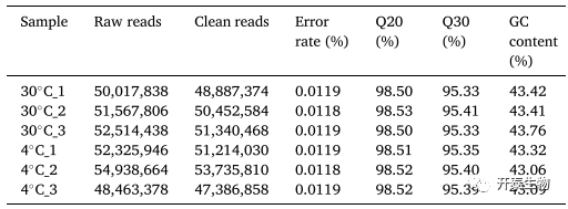 作者对6个大蒜样品的差异进行主成分分析(PCA),基于基因和蛋白表达的PCA样本分布图如图3A和图3B所示。4℃和30℃保存的大蒜样品明显分为两个不同的集群,这表明在不同温度下保存的大蒜在基因和蛋白质水平上都有显著的差异。