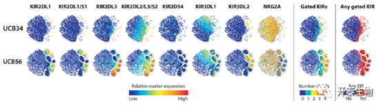 图2 质谱流式分析UCB34和UCB56 NK细胞KIR的表型