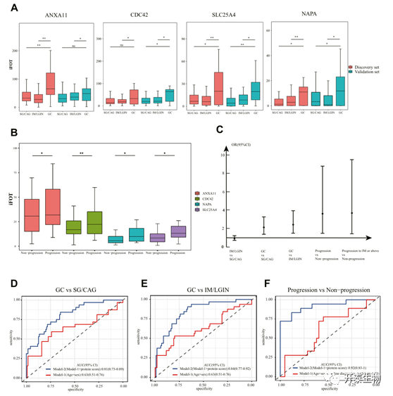 图3. 与胃病变进展和胃癌风险相关的蛋白质组学特征