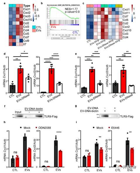 图 7. 肺EV-DNA通过TLR9信号触发中性粒细胞动员趋化因子的释放