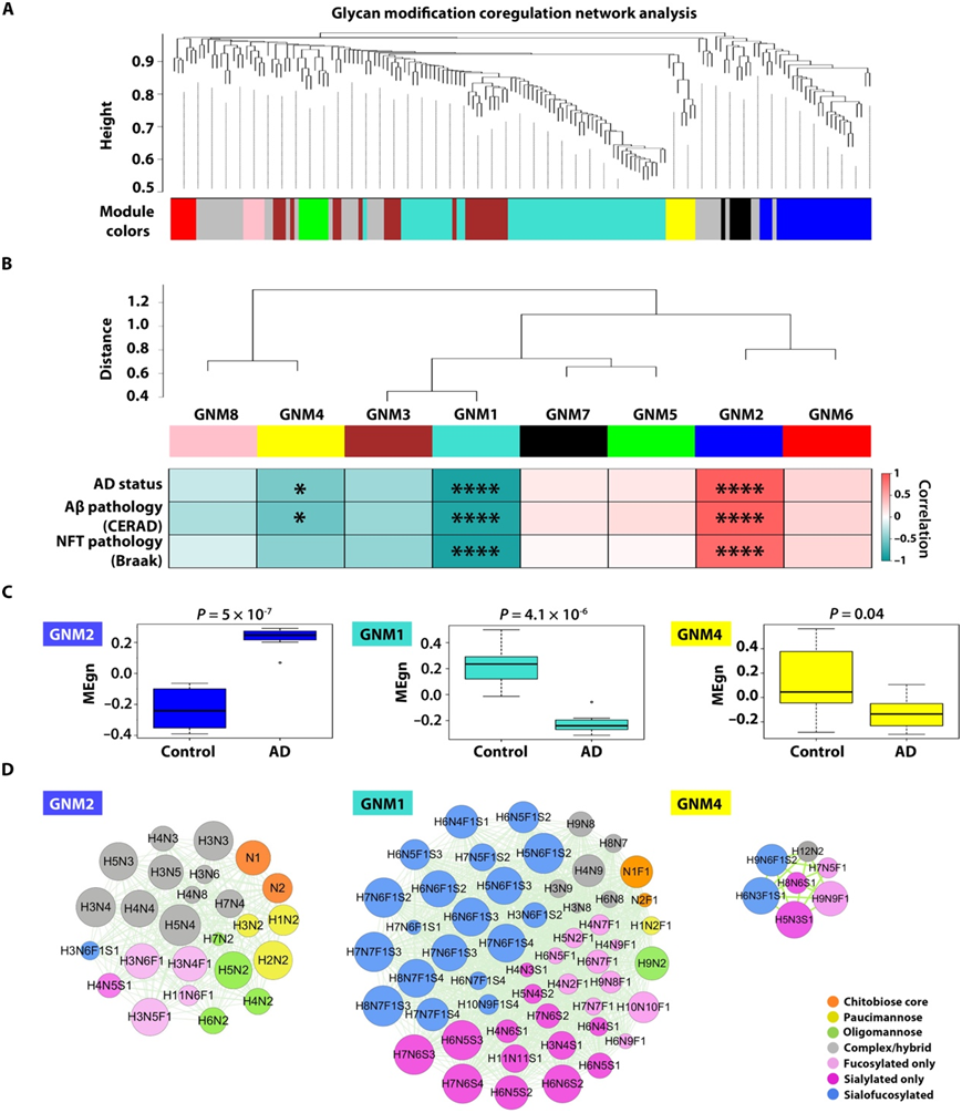 聚糖修饰共调节网络分析揭示了与 AD 病理学相关的聚糖模块