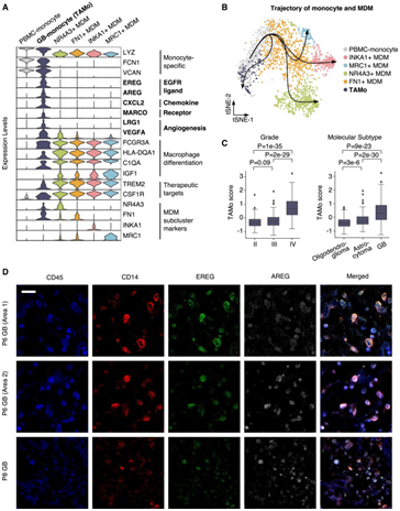 GB 中表皮生长因子受体 (EGFR)的配体EREG和AREG 表达升高的肿瘤相关单核细胞 (TAMo)