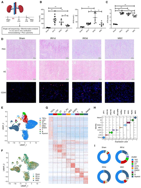IRI-AKI微环境的细胞特征和对MSC治疗的反应