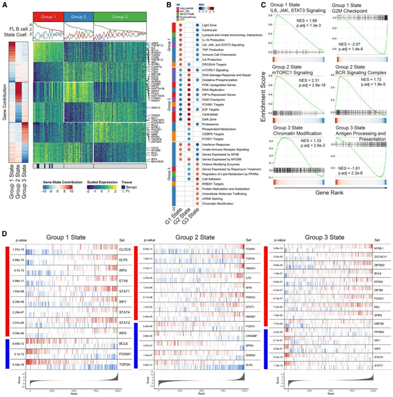 图2. 不同的FL B细胞基因表达状态突出了独特的生物活性。