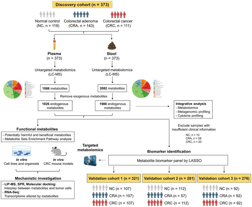 文献解读|Cancer Cell(48.8):整合血浆和粪便代谢组学可识别腺瘤-结直肠癌进展中的功能性代谢物,并作为早期诊断生物标志物