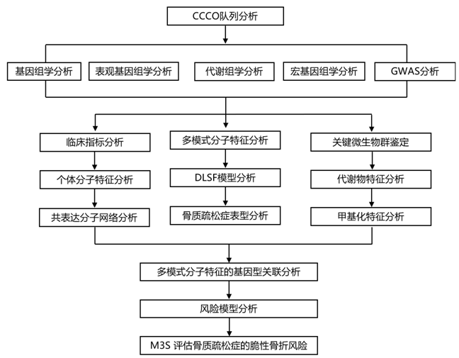 图1. 基于数据密集型分析生成的多组学图谱研究骨质疏松症及其亚型的设计和工作流程。