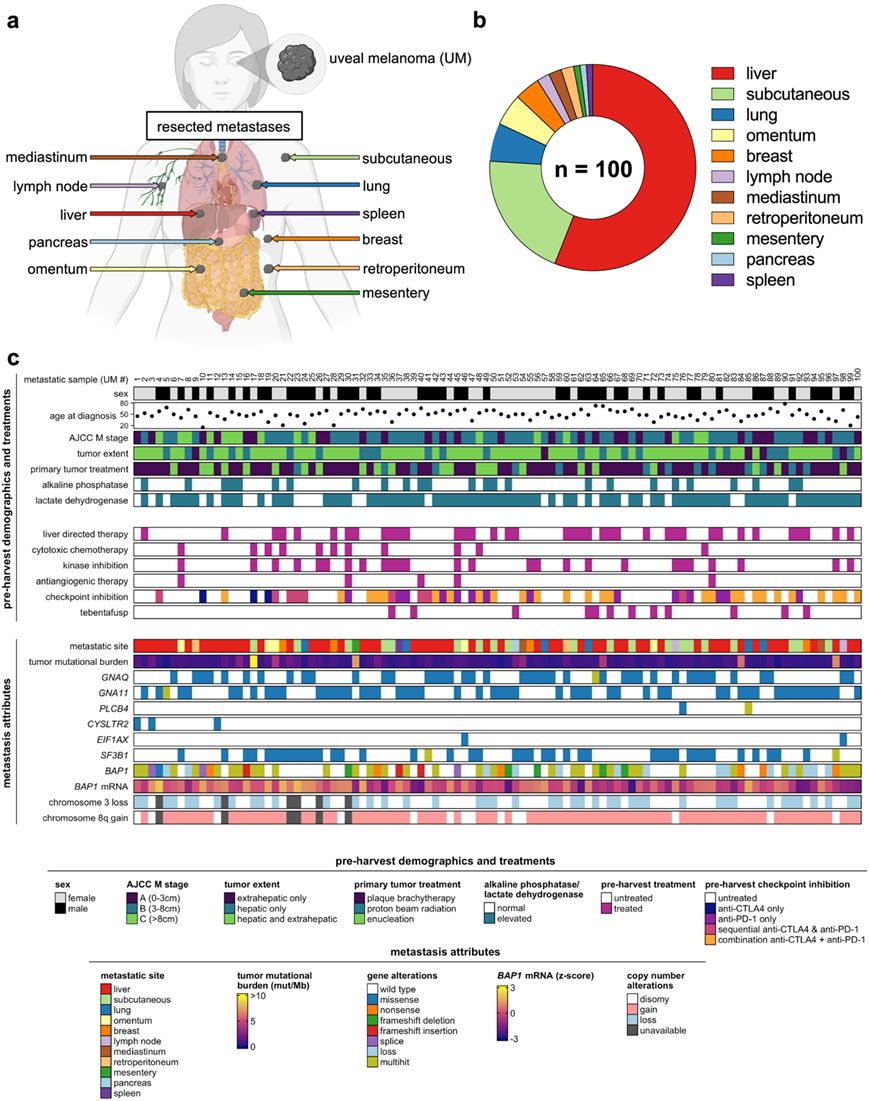 图1. 转移性葡萄膜黑色素瘤的临床基因组景观。