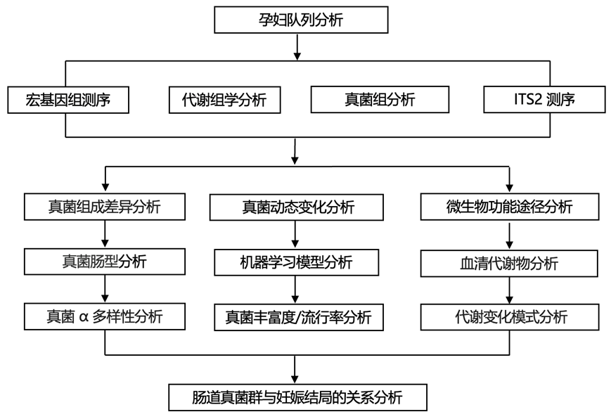 图1. 用于分析妊娠期间的肠道真菌并探索其与宿主代谢和健康的关系的研究流程图。