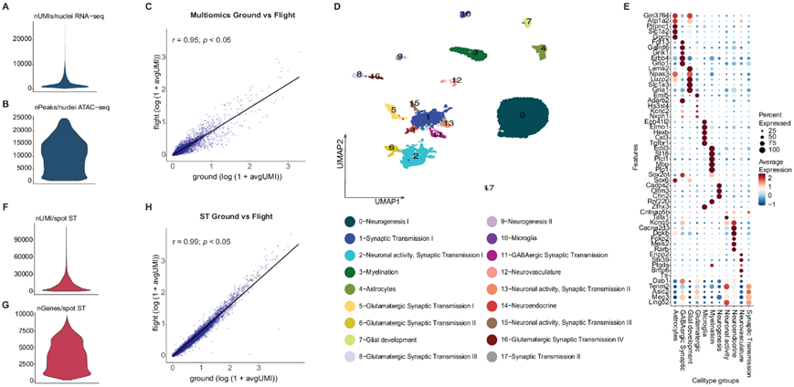 图2. 太空飞行小鼠大脑的单核多组学分析。