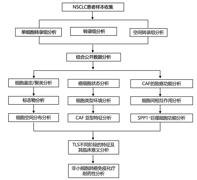 本研究通过分析 ICB 化疗前后 19 名患者的单细胞转录组数据和肿瘤的空间转录组数据来分析 NSCLC TME的肿瘤细胞状态和空间细胞组成,本研究发现肿瘤细胞和分泌性磷蛋白 1 阳性巨噬细胞与 XI 型胶原蛋白 α 1 链阳性癌症相关成纤维细胞相互作用,刺激胶原纤维在肿瘤边界沉积和缠结,阻碍 T 细胞浸润并导致不良预后。本研究还揭示了 TME 中TLS的不同状态。激活的 TLS 与预后改善相关,而缺氧微环境似乎会抑制 TLS 发展并与不良预后相关。本研究对 NSCLC ICB 化疗反应所对应的不同细胞和分子成分提供了新的见解,这将有利于未来个性化的免疫化疗。