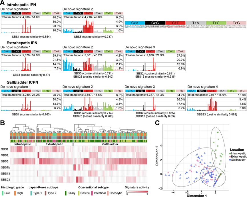 图2. 肝内 IPN、肝外 IPN 和 ICPN 按解剖位置划分的突变谱。