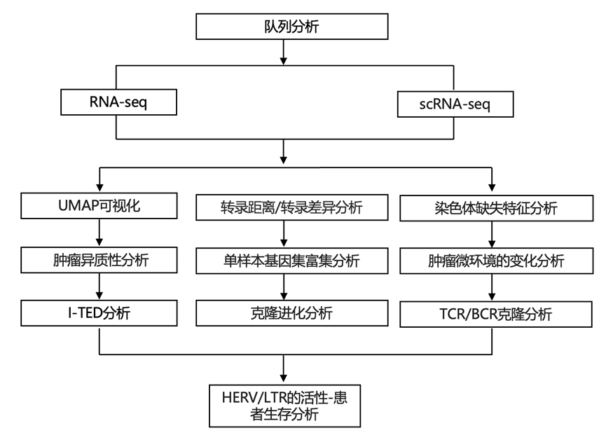 最后,他们探讨了HERV/LTR转录本的表达水平与临床结局的相关性。有趣的是,尽管HERV/LTR转录本的总体表达水平与免疫指标无关,但无论癌症分期如何,HERV/LTR转录本的总体表达水平均与生存改善相关(图6D)。在个体HERV/LTR转录本水平,他们未观察到任何与生存期显著相关,只有59个和13个分别与结局改善呈正相关和负相关。对于前5个单独的HERV/LTR元件,他们观察到它们嵌入在蛋白编码和非编码基因内或附近,而不是独立转录的、可能具有免疫原性的HERV。免疫原性herv HERV-E Chr6q15和HERV-E Chr19q12的表达与生存期无显著相关。综上所述,这提示较高的中位HERV/LTR表达和生存率之间的关联不是由任何单独的HERV/LTR元件驱动,也不是由与这些元件的整体去抑制同时发生的可检测到的更主动的免疫反应驱动。相反,只有特定的HERV亚群可能触发免疫应答,整体HERV/LTR表达和生存率之间的关联可能归因于失调的HERV/LTR对肿瘤的内在影响。