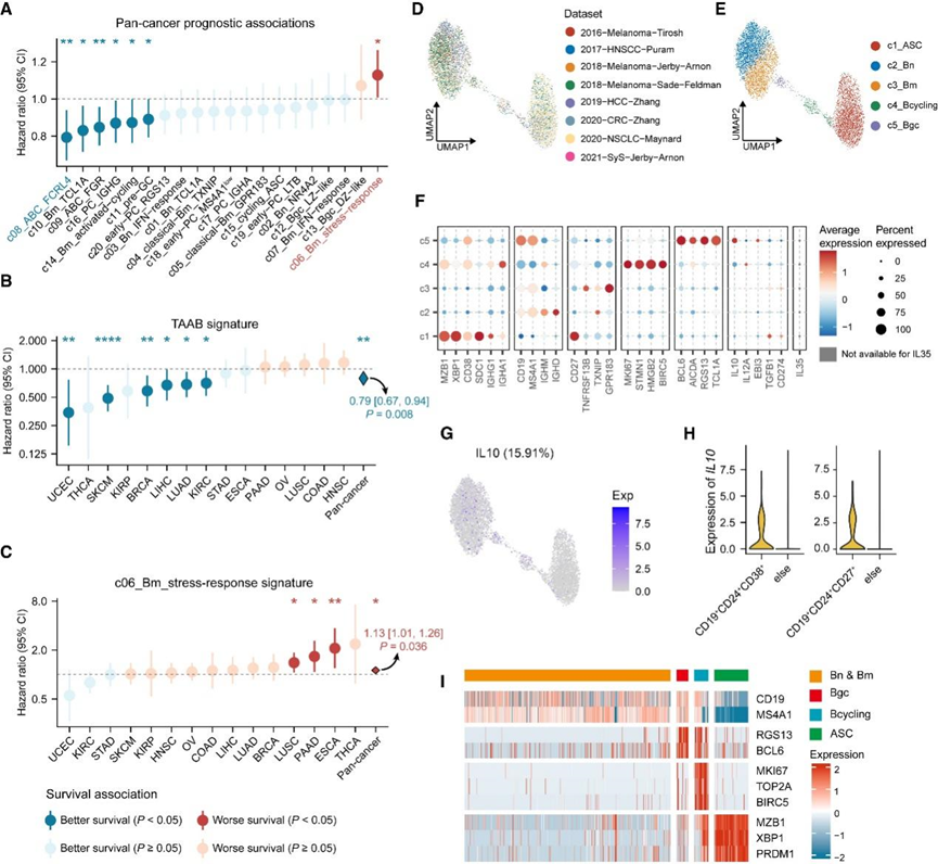 图1. 泛癌B细胞单细胞谱。
