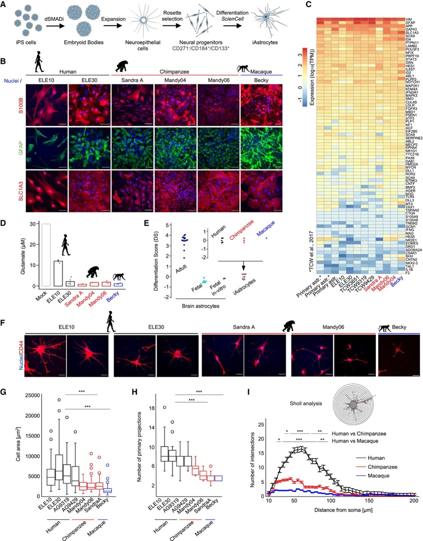 文献解读|Cell Stem Cell(19.8):灵长类星形胶质细胞的分子特征揭示了促进人类大脑进化的途径和调节变化