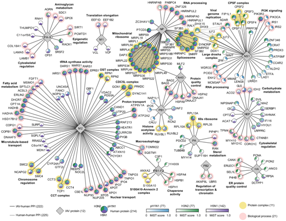 亲和纯化质谱 (AP-MS) 鉴定出 332 种 pH1N1、H3N2 和 H5N1 IAV-人类 PPI