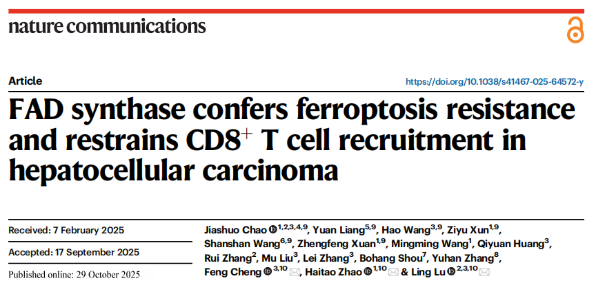 近日,由南京医科大学、中国医学科学院等顶尖科研团队联合完成的重磅研究成果,在《Nature Communications》上精彩亮相!研究首次系统揭示了FADS在肝癌铁死亡抵抗与CD8+ T细胞招募抑制中的双重作用,为肝癌免疫治疗提供了全新靶点。论文第一作者为巢家硕等,开泰生物很荣幸为本研究提供了单细胞RNA测序等关键技术服务,感谢每一位科研伙伴的信任与协作!