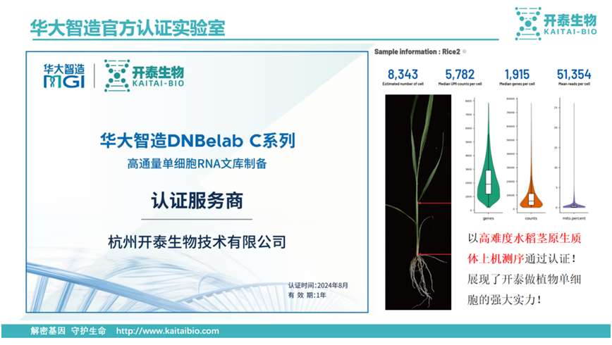 开泰更是以高难度样本水稻茎-叶鞘的单细胞测序数据通过华大智造的服务商认证,成为DNBelab C系列高通量单细胞RNA文库制备服务商。