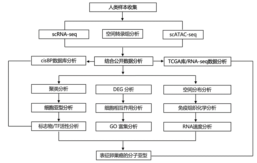 本研究使用scRNA-seq和scATAC-seq技术构建了月经周期和更年期健康人类输卵管的综合细胞图谱,对 85107 个绝经前输卵管细胞和 46111 个绝经后输卵管细胞进行了比较,发现在绝经和月经周期期间细胞类型频率、基因表达、转录因子活性和细胞间通讯发生了显著变化。月经周期依赖性的激素变化调节输卵管分泌上皮细胞的不同分子状态。绝经后输卵管在与衰老相关的转录因子(如 Jun、Fos 和 BACH1/2)中表现出较高的染色质可及性,而激素受体普遍下调,一小部分分泌上皮细胞具有ESR2、IGF1R和LEPR的高表达。绝经前分泌上皮基因聚类在免疫反应分子亚型中富集,而绝经后分泌上皮细胞中表达的一组基因在高级别浆液性卵巢癌的间充质分子类型中富集。