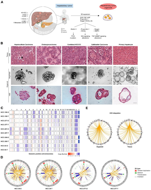 肝胆肿瘤是全球第四大癌症相关死亡原因,全球每年约有 70 万人死亡。肝胆肿瘤包括 20 多种不同的亚型,这些亚型在遗传、形态和临床上各不相同。患者来源的肝胆肿瘤类器官 (PDHO) 提供了研究肿瘤组织学和分子特征的机会。