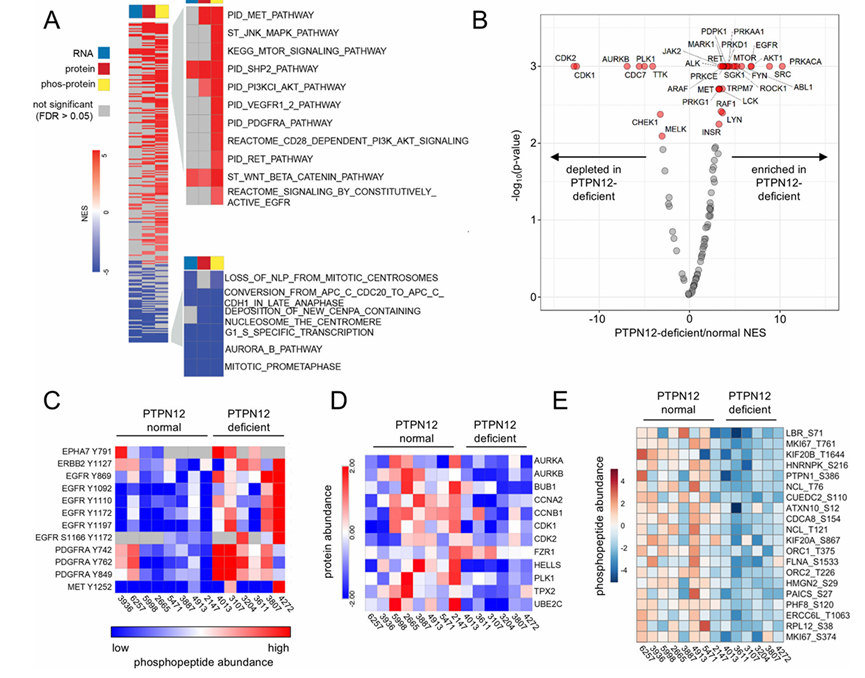 PTPN12缺陷型肿瘤中RTK信号传导和细胞周期进程通路失调