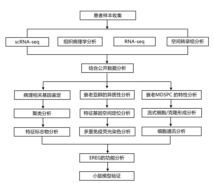 本研究探索了MDSPC的衰老在 OA 进展中的作用,旨在寻找潜在的治疗靶点。对人类和小鼠 OA 样本的组织病理学评估和生物信息学分析表明,EGFR+ MDSPC 和 EREG+巨噬细胞在骨关节炎关节软骨下骨中构成了一个衰老的骨骼单元。体外和体内实验表明,EREG 促进 EGFR+ MDSPC的衰老和过度成骨。此外,通过腺相关病毒介导的EREG基因敲低或敲除,干扰小鼠体内EREG的表达,显著抑制了软骨下骨中EGFR+ MDSPC的衰老,并减轻了OA小鼠的病理性硬化和疼痛。本项研究结果表明,软骨下骨中MDSPC的衰老是驱动OA进展的关键事件,这为开发创新的OA治疗策略提供了宝贵的参考点。